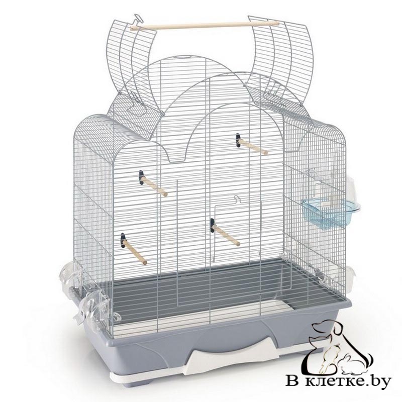 Клетка Savic Melodie 50 open открытая поставляется с 5 деревянными жердями, 4 питательными чашами, 1 фонтаном и 1 птичьей ванной.
