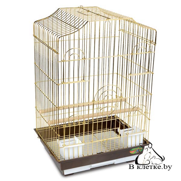Золотая клетка с фигурной крышей предназначена для средних и крупных птиц. Для удобства уборки клетка оборудована пластиковым выдвижным поддоном и съемной решеткой на дне. В комплект клетки входят 2 внутренние открытые пластиковые кормушки и 2 деревянные жердочки. Клетка для птиц Triol 6112G-K- то, что нужно каждому питомцу и его хозяину. Этот продукт, а также множество других вы можете купить в нашем зоомагазине всего лишь одним кликом по специальной цене. Что бы купить выбранный для вашего питомца продукт, необходимо набрать нашему менеджеру или заказать выбранный вами предмет через корзину. Наша курьерская служба оперативно довезет приобретенный у нас товар до порога вашего дома. Не отлаживайте покупку - заказывайте понравившийся товар у нас!