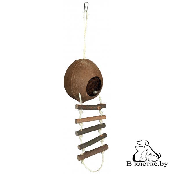 Домик с лестницей из кокосовой скорлупы изготовлен из 100% натуральных материалов, внутри кокосовое волокно. Предназначен для подвешивания в клетке. Домик для грызунов с лестницей из кокосовой скорлупы - та самая вещь, которая придется ко двору вашему любимцу. Заказать этот товар по цене 2021 со склада в Минске легко и быстро уже сегодня. Что бы купить выбранный для вашего питомца товар, нужно набрать нашему специалисту или заказать выбранный вами предмет с помощью корзины. Наша служба доставки оперативно доставит купленный у нас товар до порога вашего дома. Самый лучший выбор у нас - позвони и закажи сейчас в нашем интернет зоомагазине!