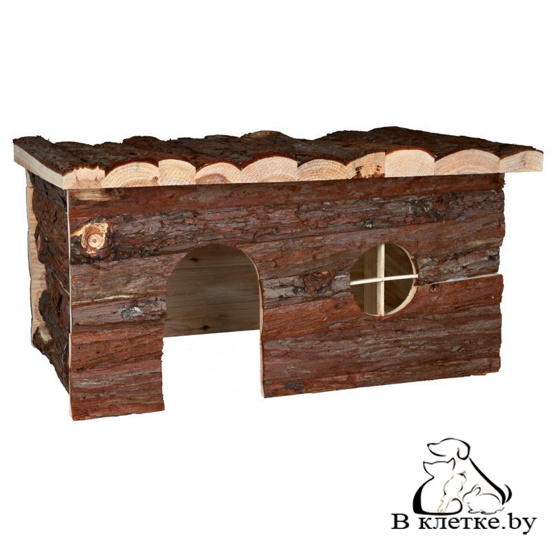Домик для кроликов с поверхностью для отдыха на крыше для отдыха Trixie Jerrik изготовлен из натуральной древесины.