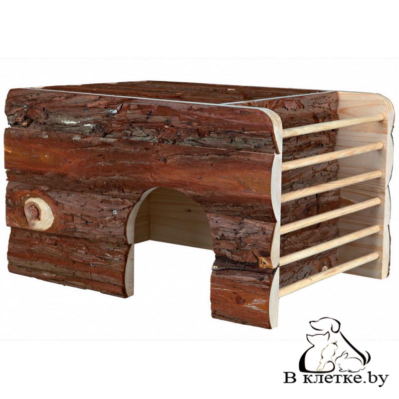 Домик с поверхностью для отдыха на крыше для кроликов и морских свинок Trixie Ila изготовлен из натуральной древесины и оборудован отделением-кормушкой для сена.