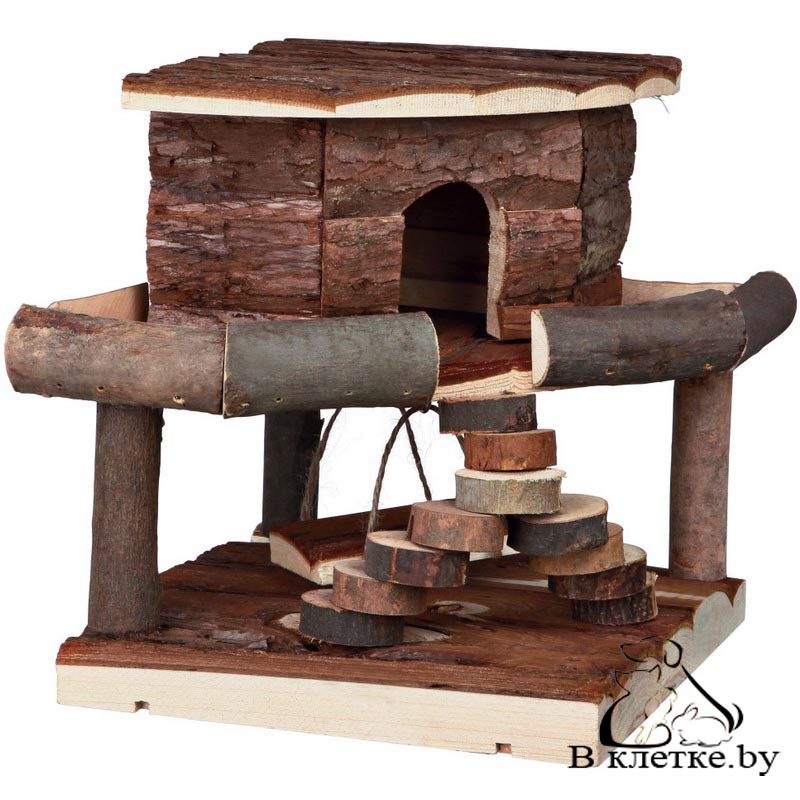 Домик с качелями и ступеньками для мышей и хомяков Trixie Ida изготовлен из натуральной древесины. Домик съёмный.