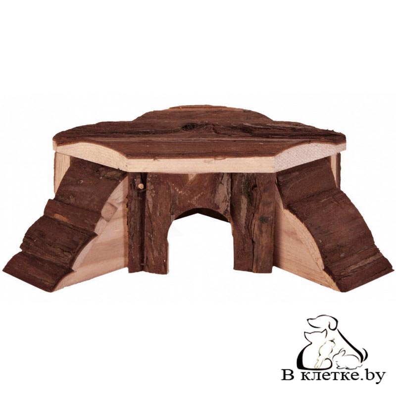 Домик угловой для мышей и хомяков Trixie Thordis изготовлен из натуральной древесины и включает в себя два трапа и поверхность для отдыха на крыше.