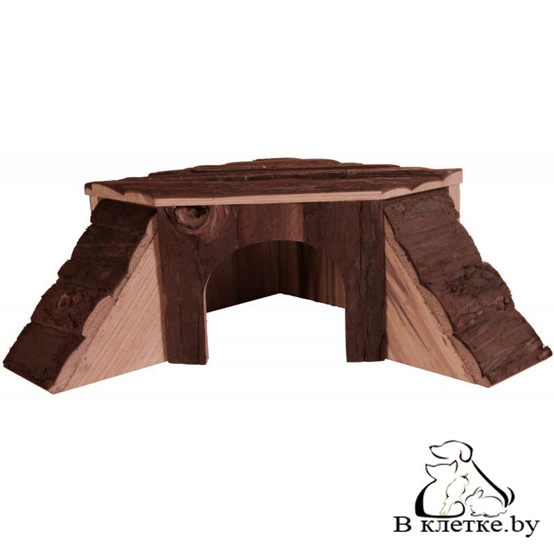 Домик угловой для морских свинок Trixie Thordis изготовлен из натуральной древесины и включает в себя два трапа и поверхность для отдыха на крыше.