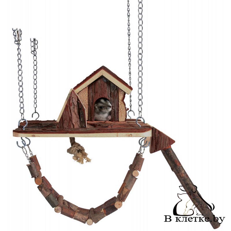 Игровой комплекс Trixie „Подвесной мост“ состоит из 2 деревянных лестниц, верёвочной лестница и кольца из сизаля с деревянным бруском. Janne предназначен для мышей, карликовых хомячков.