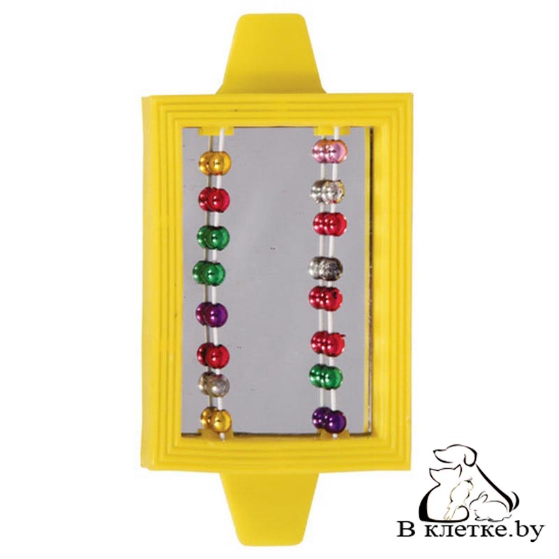 Игрушка для птиц в виде зеркала с разноцветными бусами.
