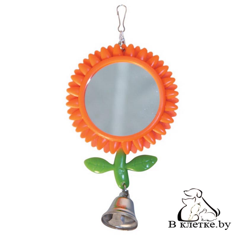 Игрушка для птиц в виде зеркальца-подсолнуха с колокольчиком