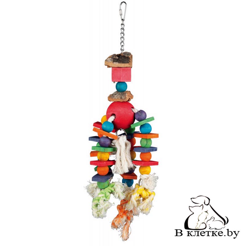 Разноцветная игрушка из дерева Trixie 58986 подойдет для кореллы, длиннохвостых попугаев.