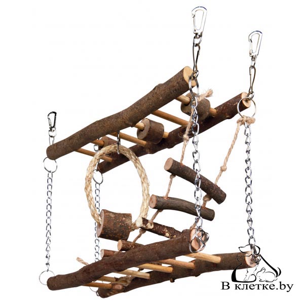 Мост подвесной из натурального дерева с двумя подвесными лестницами, с подвесной веревочной лестницей и с сизалевым кольцом с деревянной жердочкой предназначен для мышей и хомяков. Мост подвесной для грызунов Trixie - отличная покупка для вашего домашнего питомца. Заказать этот товар по цене 2021 со склада в Минске легко и быстро уже сегодня. Что бы купить выбранный для вашего питомца товар, нужно позвонить нашему менеджеру или заказать выбранный вами предмет через корзину. Забрать покупку можно у нас в офисе на ул.Каменногорская или воспользоваться службой доставки. Нашли то, что вам нужно - звоните нам и покупайте!