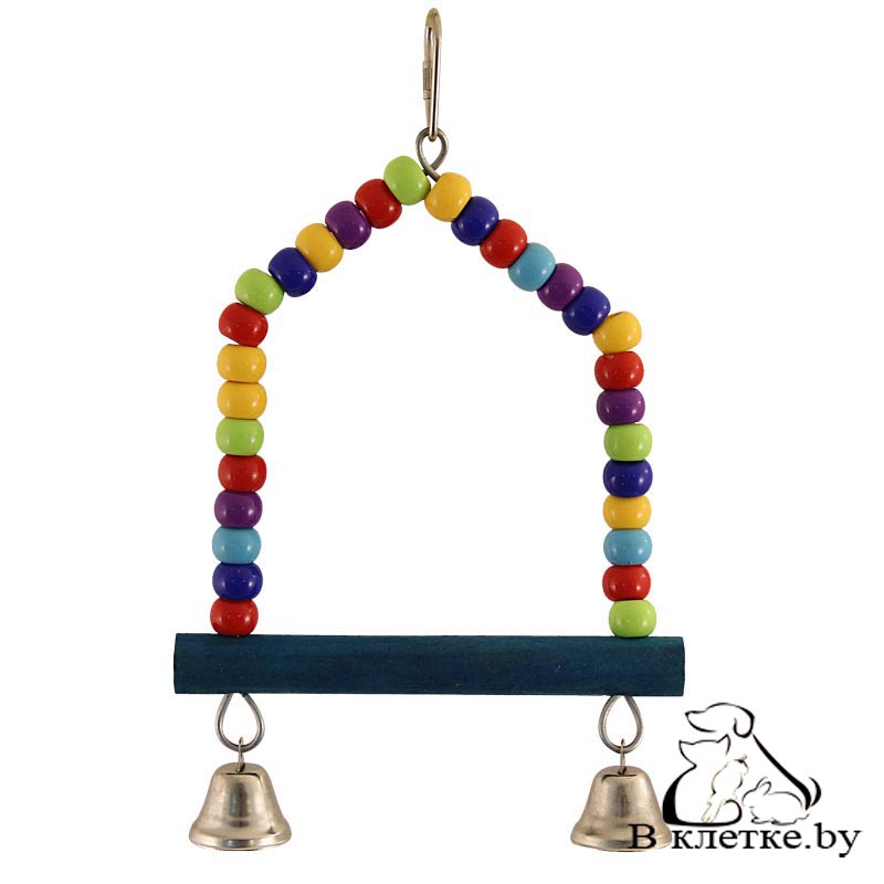 Игрушка-качели для птиц в виде качелей из бус и 2ух колокольчиков. Крепление: карабин.