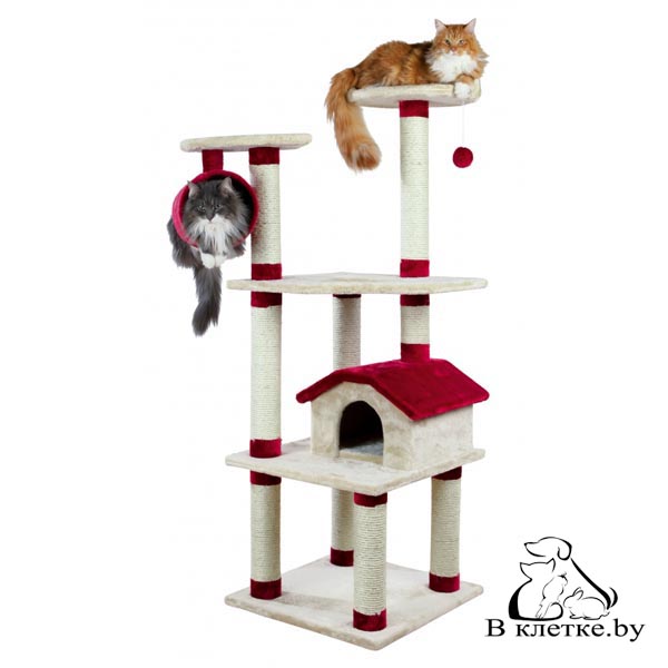 Домик с обивкой из плюша и ткани, столбики обкручены натуральным сизалем со вставками из плюша, мягкие платформы с игрушкой на резинке. Домик когтеточка Marissa - тот самый предмет, который полюбит ваш питомец. Эту простую, но настолько важную вещь уже сейчас можно купить в Минске в интернет магазине Вклетке бай. Для справок и более точной информации об условиях покупки и доставки звоните по телефонам, указанным на сайте. Если вы не хотите тратить свое время или просто не имеете возможности приехать к нам в офис за своим приобретением, то мы предлагаем воспользоваться доставкой нашим курьером по Минску или почтой в любой регион РБ. Только у нас самые лучшие цены для постоянных и оптовых покупателей!