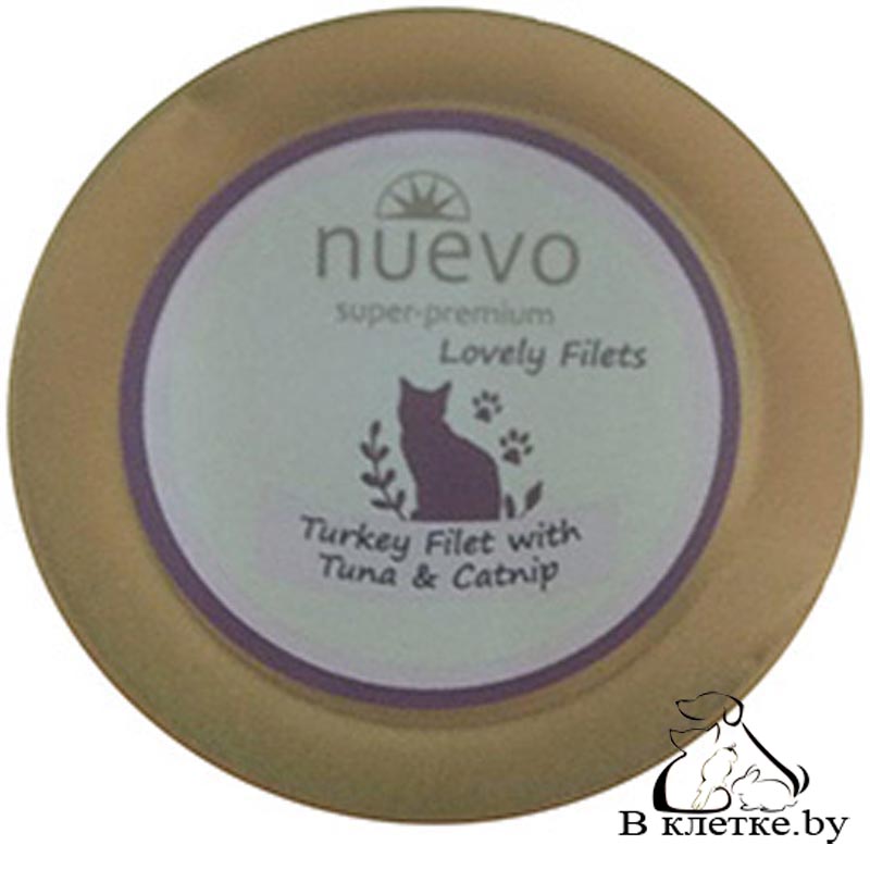 Полноценный влажный корм супер-премиум класса для взрослых кошек с филе индейки, тунцом, котовником кошачим и льняным маслом Nuevo Turkey Filet with Tuna & Catnip.
