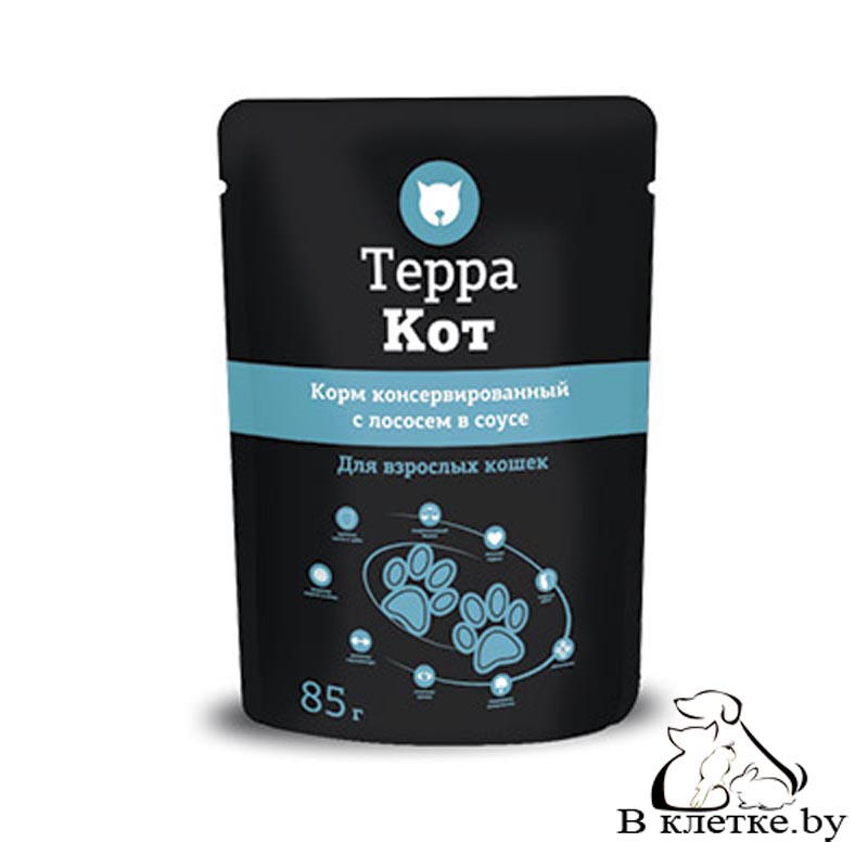 Консервы для кошек Терра Кот с лососем в соусе.