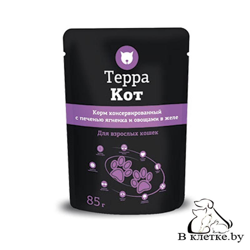 Консервы для кошек Терра Кот с печенью ягненка и овощами в желе.