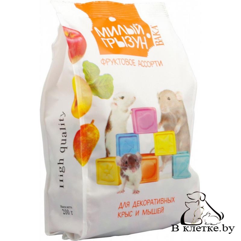 Гранулированная форма корма для декоративных крыс и мышей ВАКА HQ Милый грызун позволяет собрать вместе все необходимые компоненты в сбалансированной пропорции, и ваш питомец с удовольствием съест даже те продукты, от которых отказывался ранее. Полнорационное фруктовое ассорти «Милый грызун» произведено на высокотехнологичном оборудовании методом экструзии, при котором гранулы проходят процесс полного обеззараживания. Секрет эффекта гранул состоит в том, что в них питательные вещества содержатся в нужных соотношениях и количествах, что я вляется самым благоприятным условием для лучшего их усвоения организмом. Гранулы съедаются грызуном полностью, и нет необходимости очищать жилище вашего питомца от шелухи и других отходов, которые обячно появляются при кормлении зерновыми смесями. Всегда дополняйте рацион вашего питомца свежей зеленью.