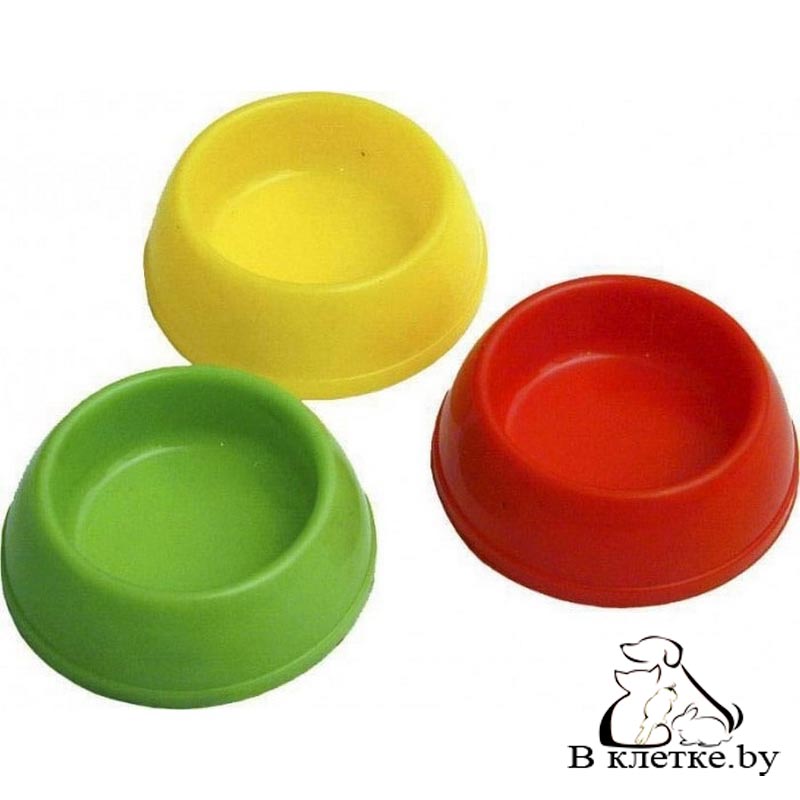 Миска пластмассовая для грызунов. Пищевой пластик безопасен для натурального рациона, сухого корма или воды. Возможны различные варианты расцветки.