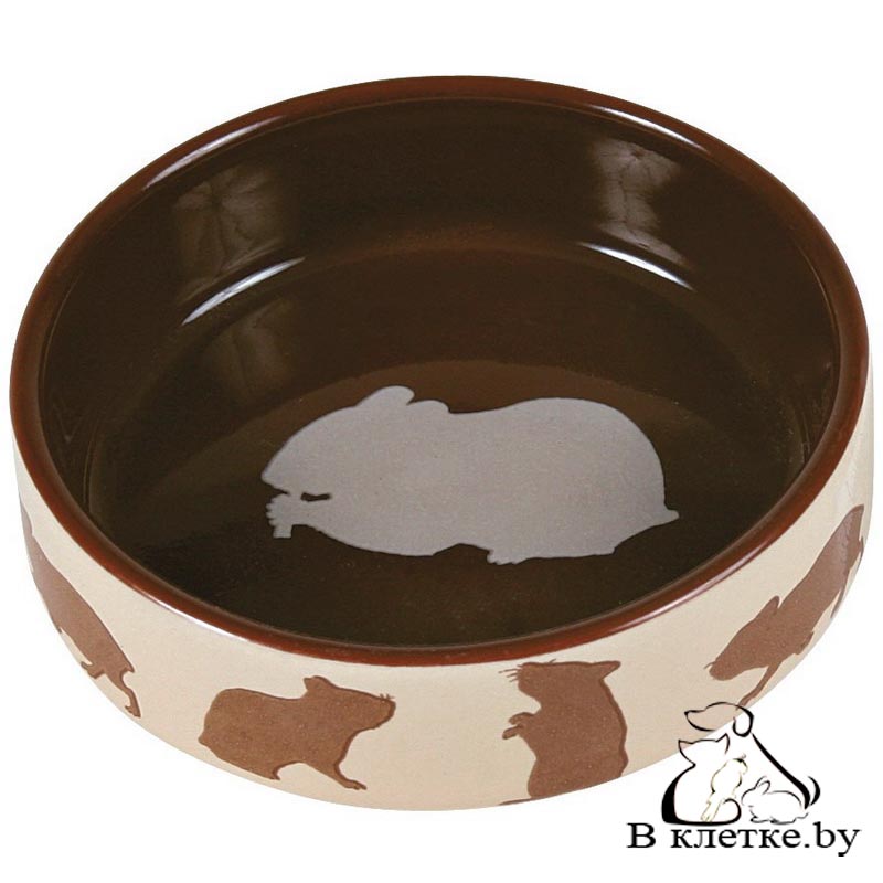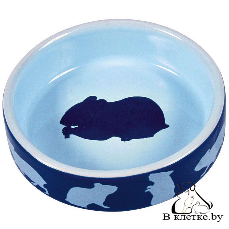 Керамическая миска для грызунов Trixie изготовлена с рисунками хомяков. Возможны различные варианты расцветки.