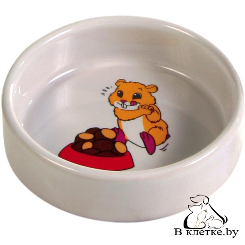 Керамическая миска для грызунов Trixie изготовлена с рисунком хомяка.