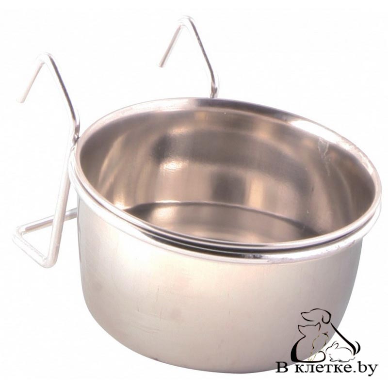 Подвесная кормушка для попугаевиз металла с держателем Trixie 5493 изготовлена из нержавеющей стали, держатель хромированный.