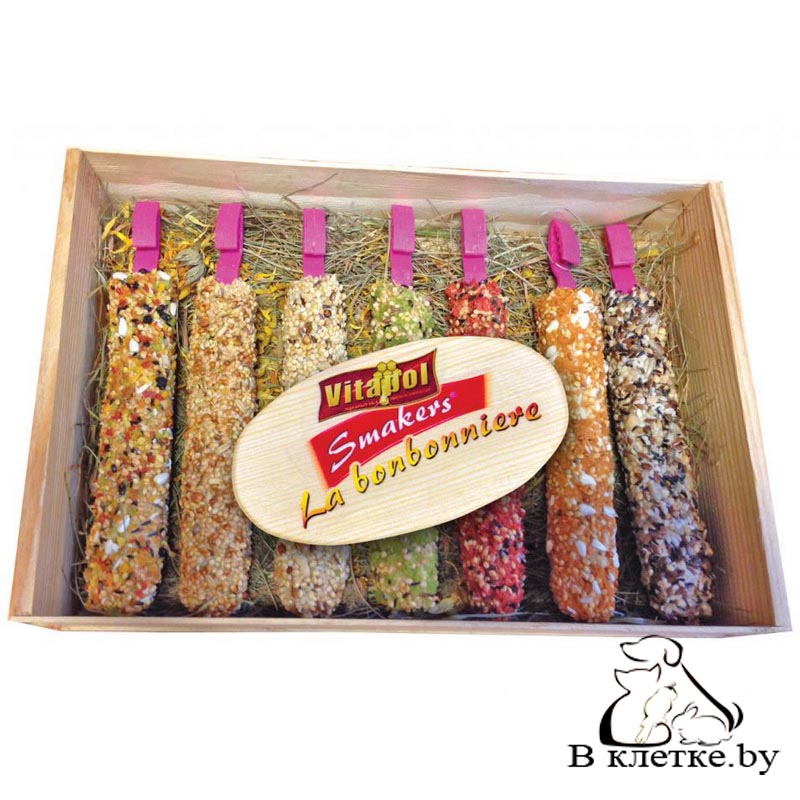 Отличный подарок для маленьких и средних попугаев и экзотических птиц. Деревянная коробка с 7 различными, лучшими вкусами Smakers. Идеальная закуска на каждый день. Дополняет рацион мелких домашних животных. Благодаря беспрецедентной технологии производства, они обеспечивают натуральные витамины и минералы из ингредиентов, которыми они богаты.