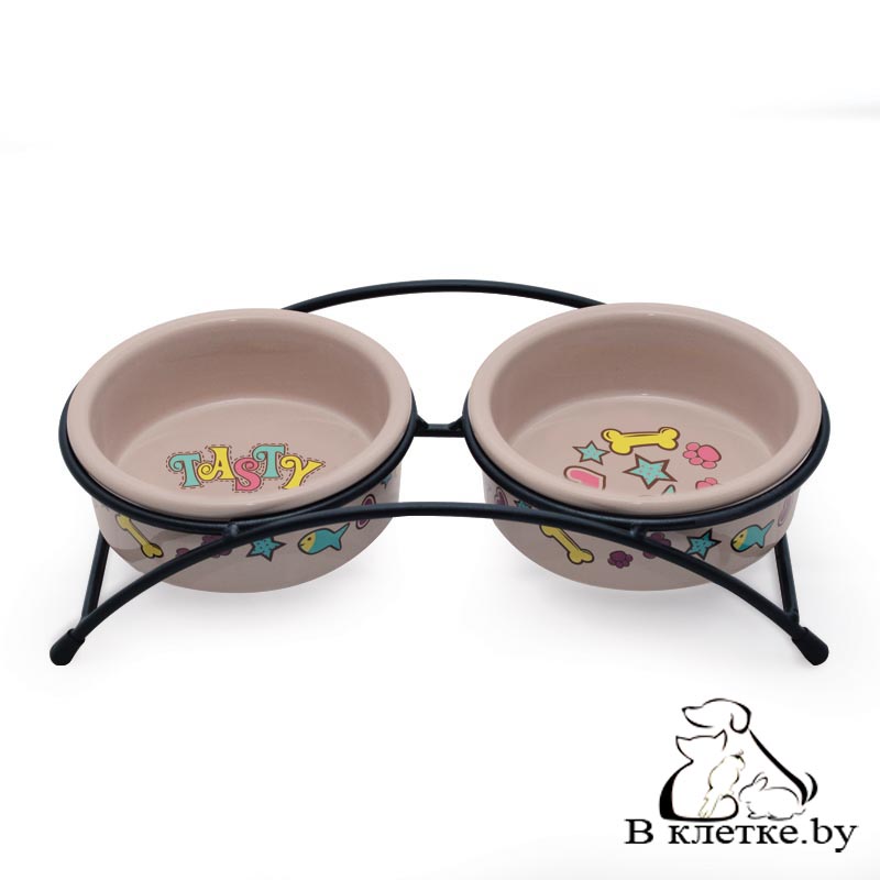 Миска керамическая на подставке Triol «Лакомка» - этот функциональный комплект из двух универсальных круглых мисок на подставке выполнен из керамики высокого качества и отлично подходит для кошек и собак мелких пород. Такие миски идеальны как для воды, так и для корма разной консистенции. Изделие комфортно для питомца и легко моется под струей проточной воды с использованием моющих бытовых средств. А эффектный дизайн стимлизованной под ковку подставки позволит ей стать украшением любого интерьера. Размер: d дна - 112мм; d в верхней части - 125мм; высота - 45мм. Размер подставки - 280*135*65мм. Объем 2*0,25л. Высококачественная миска для животных в зоомагазине в Минске. Произведена из составляющих, которые не токсичны. Её разрешено мыть как руками, так и в посудомоечной машине.