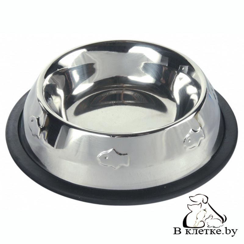 Миска для кошек с рельефным рисунком Trixie изготовлена из нержавеющей стали. Утяжеленная версия. Не скользит благодаря резиновому кольцу-подставке.