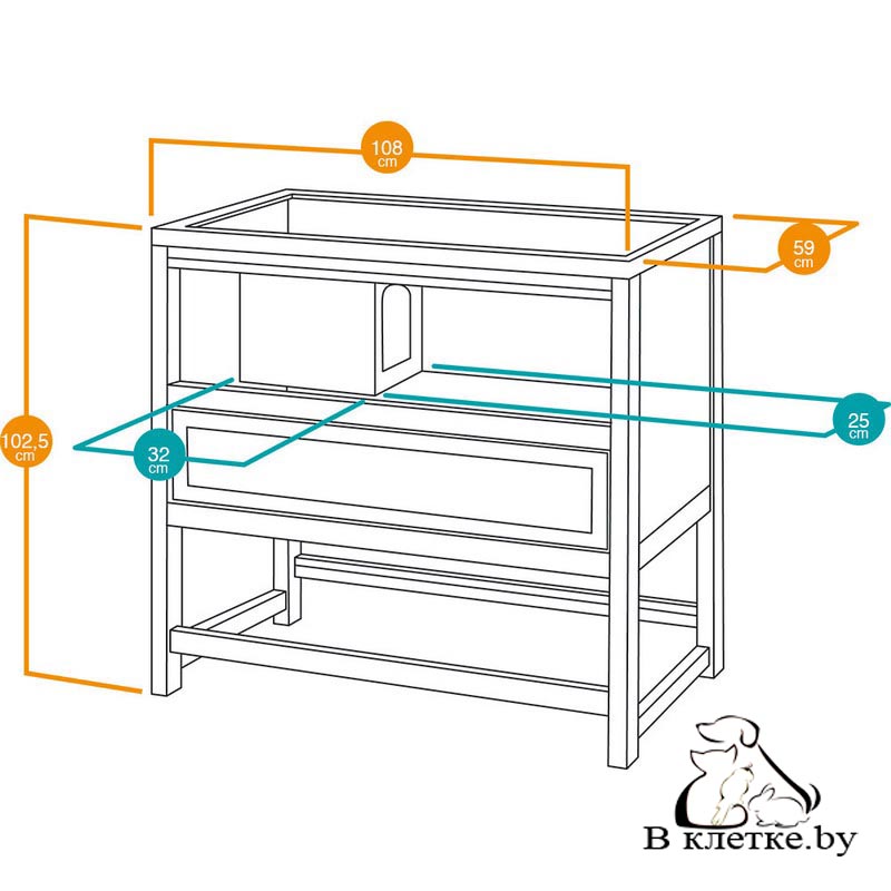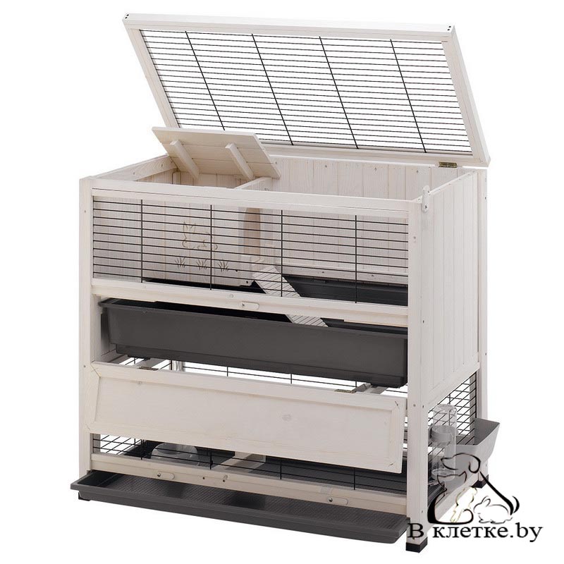 Cottage - деревянная клетка для кроликов из древесины северной сосны, выполненная в элегантном пастельном цвете, который идеально впишется в интерьер вашего дома. Клетка разделена на 2 этажа и обеспечивает вашему питомцу свободу передвижения, благодаря легкому доступу ко всем уровням. Внизу расположена огороженная зона со скользящей дверкой, через которую ваш питомец сможет выйти из клетки.