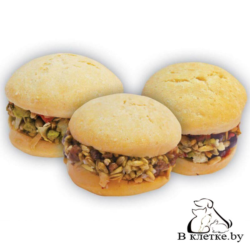 Изготовлено под постоянным ветеринарным контролем в оригинальной форме гамбургера, состоящего из вкусной пшеничной булочки с начинкой из высококачественных злаковых зерен с кусочками фруктов, овощей и орехов.