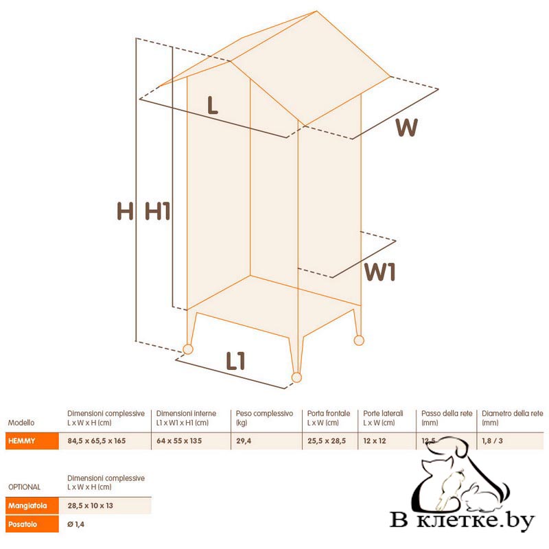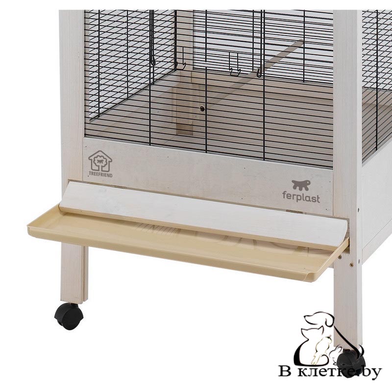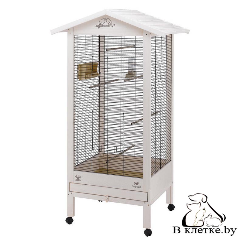 Ferplast HEMMY - элегантный вольер для канареек и экзотических птиц. Изготовлен из дерева и украшен декоративным рисунком с птицами в верхней передней части. Древесина обработана специальным нетоксичным водостойким покрытием, нанесенным поточным методом для большей прочности и долговечности. Вольер Hemmy выполнен в нежных пастельных цветах, комплектуется всеми необходимыми аксессуарами для комфотного существования ваших птиц. Его легко содержать в чистоте благодаря выдвижному внутреннему подносу. Вольер также оборудован колесами для легкого передвижения. Внутри вы сможете расположить аксессуары, которые входят в комплект: жердочки, поилку и поворотную кормушку Brava 6. Hemmy - первый продукт компании Ferplast линии Treefriend. Продукты этой линии производятся с использованием древесины, которую добывают в специально выделенных лесах, что позволяет заботиться об окружающей среде.